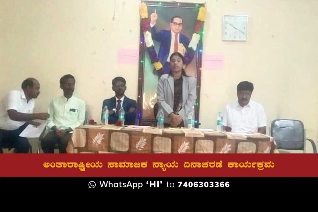 Sidlaghatta : ಶಿಡ್ಲಘಟ್ಟ ನಗರದ ಸಮಾಜ ಕಲ್ಯಾಣ ಇಲಾಖೆಯ ಕಚೇರಿಯಲ್ಲಿ ಮಂಗಳವಾರ ತಾಲ್ಲೂಕು ಕಾನೂನು ಸೇವಾ ಪ್ರಾಧಿಕಾರ, ವಕೀಲರ ಸಂಘ ಮತ್ತು ಸಮಾಜ ಕಲ್ಯಾಣ ಇಲಾಖೆಯ ಸಹಯೋಗದಲ್ಲಿ ಆಯೋಜಿಸಿದ್ದ ಅಂತಾರಾಷ್ಟ್ರೀಯ ಸಾಮಾಜಿಕ ನ್ಯಾಯ ದಿನಾಚರಣೆ ಕಾರ್ಯಕ್ರಮದಲ್ಲಿ ಪ್ರಧಾನ ಸಿವಿಲ್ ನ್ಯಾಯಾಧೀಶೆ ಜೆ.ಪೂಜಾ ಅವರು ಮಾತನಾಡಿದರು.