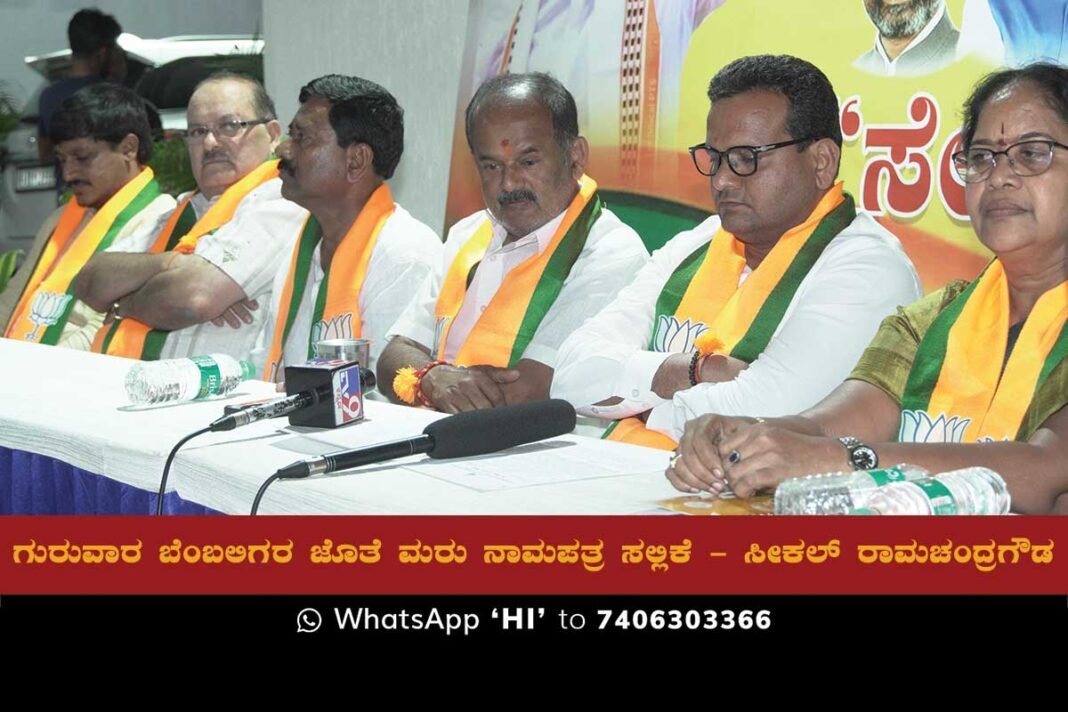 Sidlaghatta : BJP candidate for the Sidlaghatta assembly constituency, Seekal Ramachandra Gowda, announced during a press conference at the Sidlaghatta taluk BJP office ‘Sevasaudha’ that he plans to submit his nomination papers for the upcoming elections through a large rally of supporters and activists. The rally is scheduled to take place on Thursday at 11 am and will include the participation of state leaders such as PC Mohan, MP Muniswamy, MLAs K Sudhakar, and MTB Nagaraj.