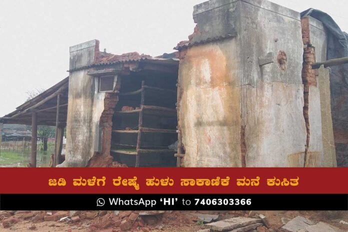 ಸುಮಾರು 20 ವರ್ಷಗಳ ಹಿಂದೆ ಕಟ್ಟಿಸಿದ್ದ ಮನೆ ಕುಸಿದು ಬಿದ್ದು ಹಾನಿಯಾಗಿದೆ. ಮನೆಯಲ್ಲಿ ಮಲಗಿದ್ದ ದಂಪತಿ ಅಪಾಯದಿಂದ ಪಾರಾಗಿದ್ದಾರೆ. ರೇಷ್ಮೆ ಹುಳು ಸಾಕಾಣಿಕೆ ಮನೆಯ ಗೋಡೆ ಕುಸಿದು ಬಿದ್ದಿದ್ದರಿಂದ ಚಾವಣಿಯ ಸಿಮೆಂಟ್ ಶೀಟ್ಗಳು ಸಂಪೂರ್ಣ ಕಿತ್ತು ಹೋಗಿವೆ. ಮನೆ ಕಳೆದುಕೊಂಡ ಲಕ್ಷ್ಮಣ್ ದಂಪತಿ, ಬೇರೊಂದು ಮನೆ ಕಟ್ಟಿಕೊಳ್ಳಲು ಸರ್ಕಾರದಿಂದ ಪರಿಹಾರಕ್ಕೆ ಕೋರಿದ್ದಾರೆ.