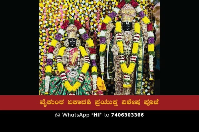 ವೈಕುಂಠ ಏಕಾದಶಿಯ ಪ್ರಯುಕ್ತ ಸ್ವಾಮಿಯವರಿಗೆ ಸುಪ್ರಭಾತ ಸೇವೆ, ಅಭಿಷೇಕ, ವಜ್ರಾಕೋಷ ಅಲಂಕಾರ ಹಾಗೂ ವೈಕುಂಠ ದ್ವಾರ ದರ್ಶನ ಕಾರ್ಯಕ್ರಮಗಳನ್ನು ಏರ್ಪಡಿಸಲಾಗಿತ್ತು. ವೈಕುಂಠ ಏಕಾದಶಿಯ ದಿನ ತಮ್ಮ ಪೂರ್ವಜರಿಗೆ, ಮಾತಾ ಪಿತೃಗಳಿಗೆ ಸದ್ಗತಿ ಮತ್ತು ವೈಕುಂಠ ಪ್ರಾಪ್ತಿಯಾಗಲಿ ಎಂದು ಹೇಳಿ ವೈಕುಂಠ ದ್ವಾರ ಪ್ರವೇಶವನ್ನು ಮಾಡಿದರೆ ಸದ್ಗತಿ ಸಿಗುತ್ತದೆ ಎಂಬ ನಂಬಿಕೆ ಭಕ್ತರದ್ದು. ಈ ಸಂದರ್ಭದಲ್ಲಿ ದೇವರಿಗೆ ವಿಶೇಷ ಅಲಂಕಾರ ಮಾಡಲಾಗಿತ್ತು. ದೇವಾಲಯಕ್ಕೆ ಬರುವ ಭಕ್ತಾಧಿಗಳಿಗೆ ತೀರ್ಥ ಪ್ರಸಾದಗಳನ್ನು ವಿನಿಯೋಗ ಮಾಡಲಾಯಿತು.