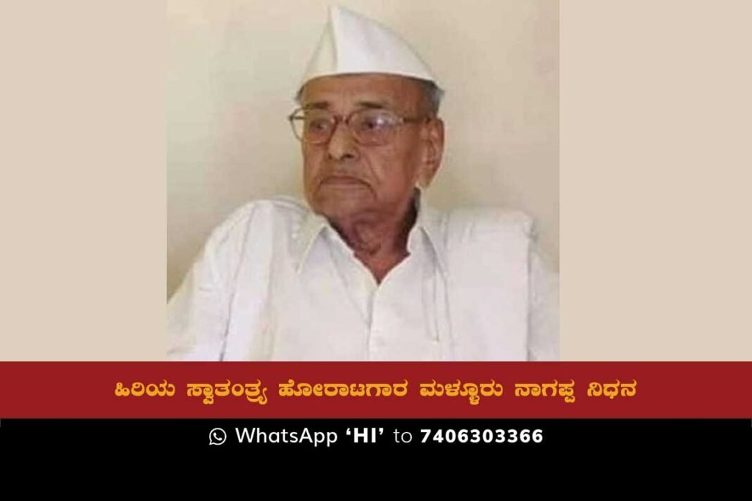 Sidlaghatta : ಶಿಡ್ಲಘಟ್ಟ ತಾಲ್ಲೂಕಿನ ಮಳ್ಳೂರು ಗ್ರಾಮದ ಹಿರಿಯ ಸ್ವಾತಂತ್ರ್ಯ ಹೋರಾಟಗಾರ ಮಳ್ಳೂರು ನಾಗಪ್ಪ (100) ಭಾನುವಾರ ಬೆಳಗ್ಗೆ ನಿಧನರಾಗಿದ್ದಾರೆ.