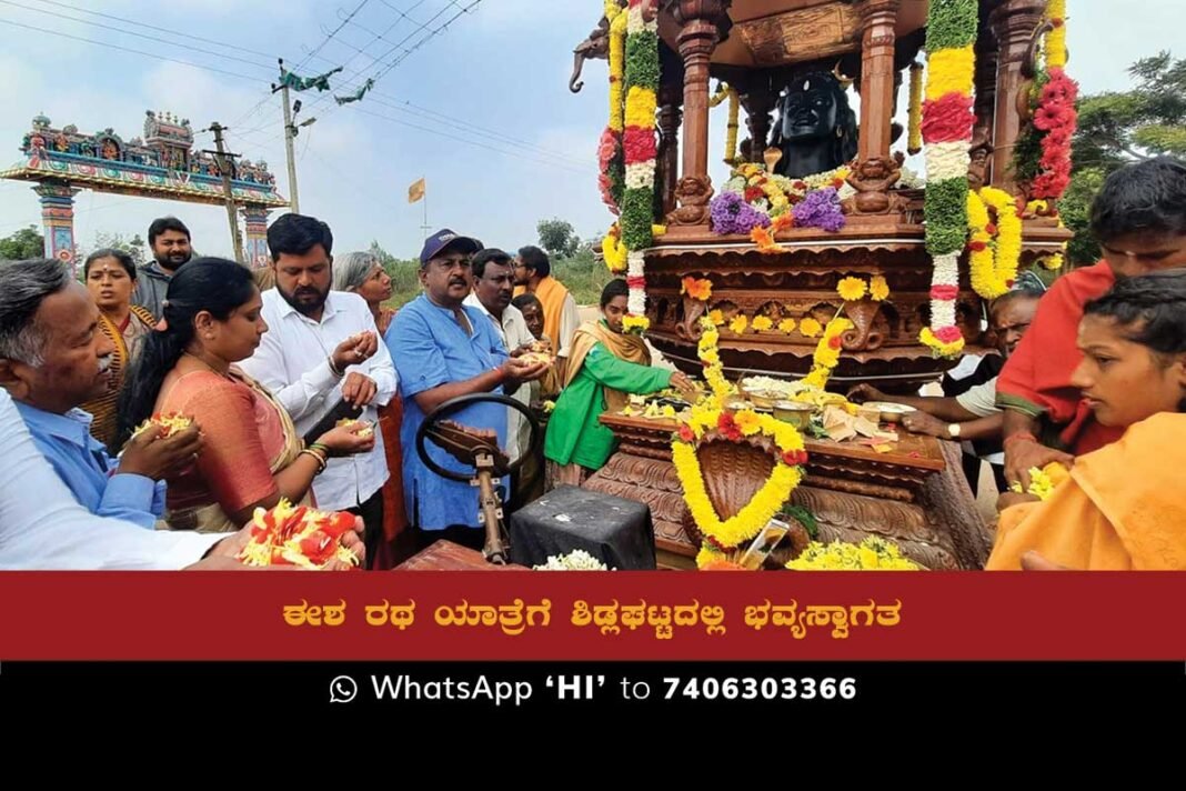 Sidlaghatta : ಶಿಡ್ಲಘಟ್ಟ ತಾಲ್ಲೂಕಿನ ಹನುಮಂತಪುರದ ಗೇಟ್ ಬಳಿ ಆಗಮಿಸಿದ ಈಶ ರಥ ಯಾತ್ರೆಯನ್ನು ನಗರಕ್ಕೆ ಭವ್ಯವಾಗಿ ಸ್ವಾಗತ ಕೋರಲಾಯಿತು.