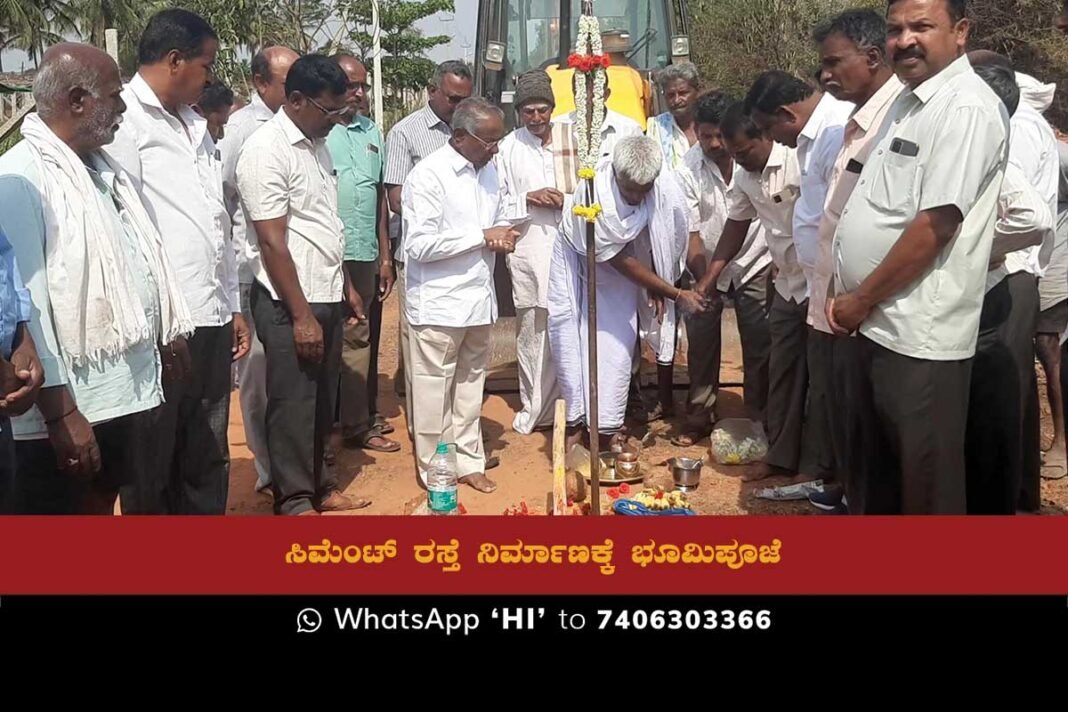 Melur, Sidlaghatta : MLA V. Muniyappa has emphasized the responsibility of the government and people’s representatives to prioritize development work based on the desires of the common people, regardless of the government’s stance. His comments were made after performing the Bhoomi Puja ceremony for the construction of a cement road under the Yettinahole project and KL IDP project, costing Rs. 40 lakhs and Rs. 5 lakhs, respectively. The road will stretch from the Sri Anjaneyaswamy temple near the gate of Choudasandra village of Sidlaghatta taluk to the overhead tank.