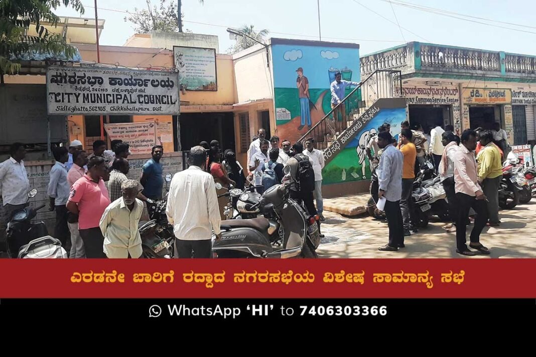 Sidlaghatta : The Municipal Council’s Special General Meeting, which was scheduled for March 20, has been abruptly postponed, causing dissatisfaction among councilors and the public sector. This is the second time the meeting has been canceled, and members are expressing frustration with the lack of a platform to voice their concerns.