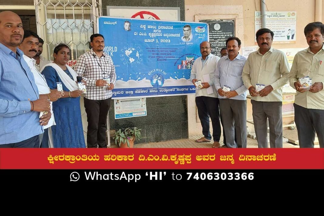 ಶಿಡ್ಲಘಟ್ಟ ನಗರದಲ್ಲಿ ಕೋಲಾರ-ಚಿಕ್ಕಬಳ್ಳಾಪುರ ಜಿಲ್ಲಾ ಹಾಲು ಒಕ್ಕೂಟ ಶಿಡ್ಲಘಟ್ಟ ಶಿಬಿರದ ಕಚೇರಿಯಿಂದ ವಿಶ್ವ ಹಾಲು ದಿನಾಚರಣೆ ಹಾಗೂ ರಾಜ್ಯದ ಕ್ಷೀರಕ್ರಾಂತಿಯ ಹರಿಕಾರ ದಿ.ಎಂ.ವಿ.ಕೃಷ್ಣಪ್ಪ ಅವರ ಜನ್ಮ ದಿನಾಚರಣೆ ಕಾರ್ಯಕ್ರಮದ ಪ್ರಯುಕ್ತ ಸಾರ್ವಜನಿಕ ಆಸ್ಪತ್ರೆಯಲ್ಲಿನ ಒಳ ಹಾಗೂ ಹೊರ ರೋಗಿಗಳಿಗೆ ಗುಡ್ಲೈಫ್ ಹಾಲಿನ ಪ್ಯಾಕೆಟ್ಗಳನ್ನು ವಿತರಿಸಿ ಅವರು ಮಾತನಾಡಿದರು.