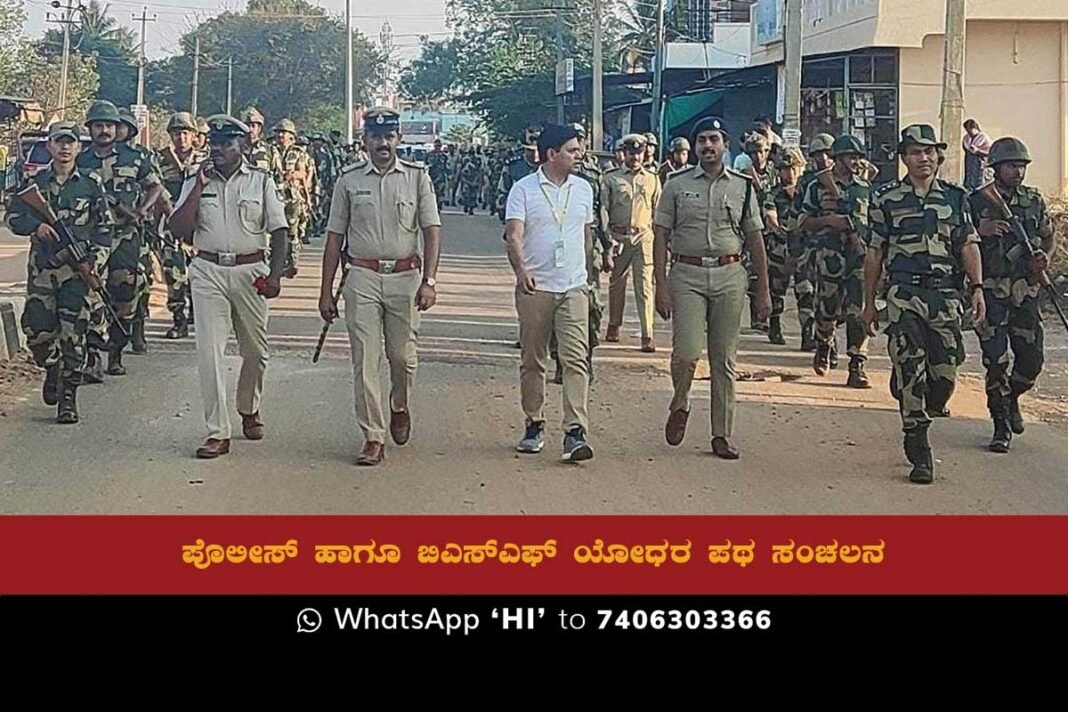 Sidlaghatta : On Saturday, in preparation for the upcoming assembly elections on May 10th, police and BSF troopers conducted road patrols throughout the city. The patrols covered areas including Pathasanchalana Kote circle, Siddharthanagar, Vijayalakshmi circle, T.B. road through Santhoshnagar, Rajiv Gandhi sheltered areas, and started from Shidlaghatta city bus station.