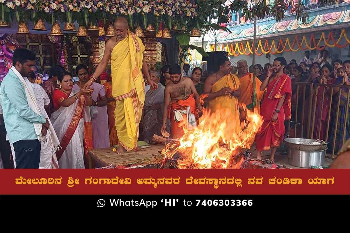 Melur, Sidlaghatta : ಶಿಡ್ಲಘಟ್ಟ ತಾಲ್ಲೂಕಿನ ಮೇಲೂರಿನ ಶ್ರೀ ಗಂಗಾದೇವಿ ಭಕ್ತಮಂಡಳಿ, ಶ್ರೀ ಗಂಗಾದೇವಿ ಧರ್ಮದರ್ಶಿ ಟ್ರಸ್ಟ್ ಮತ್ತು ಮೇಲೂರು ಗ್ರಾಮ ಪಂಚಾಯಿತಿ ವತಿಯಿಂದ ಮೂರನೇ ವರ್ಷದ ನವ ಚಂಡಿಕಾ ಯಾಗವನ್ನು ಶ್ರೀ ಗಂಗಾದೇವಿ ಅಮ್ಮನವರ ದೇವಸ್ಥಾನದ ಸನ್ನಿಧಿಯಲ್ಲಿ ಶುಕ್ರವಾರ ಹಮ್ಮಿಕೊಳ್ಳಲಾಗಿತ್ತು.