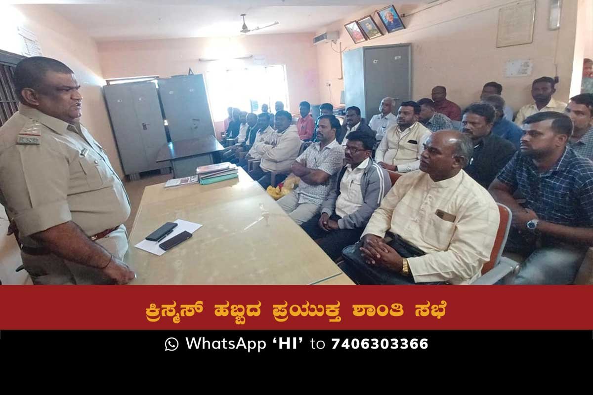 ಶಾಂತಿ ಸಭೆಯಲ್ಲಿ ನಗರ ಠಾಣೆ ಸಬ್ ಇನ್ಸ್ ಪೆಕ್ಟರ್ ಸುನಿಲ್ ಕುಮಾರ್, ಕ್ರೈಂ ಸಬ್ ಇನ್ಸ್ ಪೆಕ್ಟರ್ ಪದ್ಮಾವತಮ್ಮ, ಪೋಲಿಸ್ ಸಿಬ್ಬಂದಿ ಹಾಗೂ ಚರ್ಚಗಳ ಫಾದರ್ ಗಳು, ಮುಖಂಡರು ಹಾಜರಿದ್ದರು.
