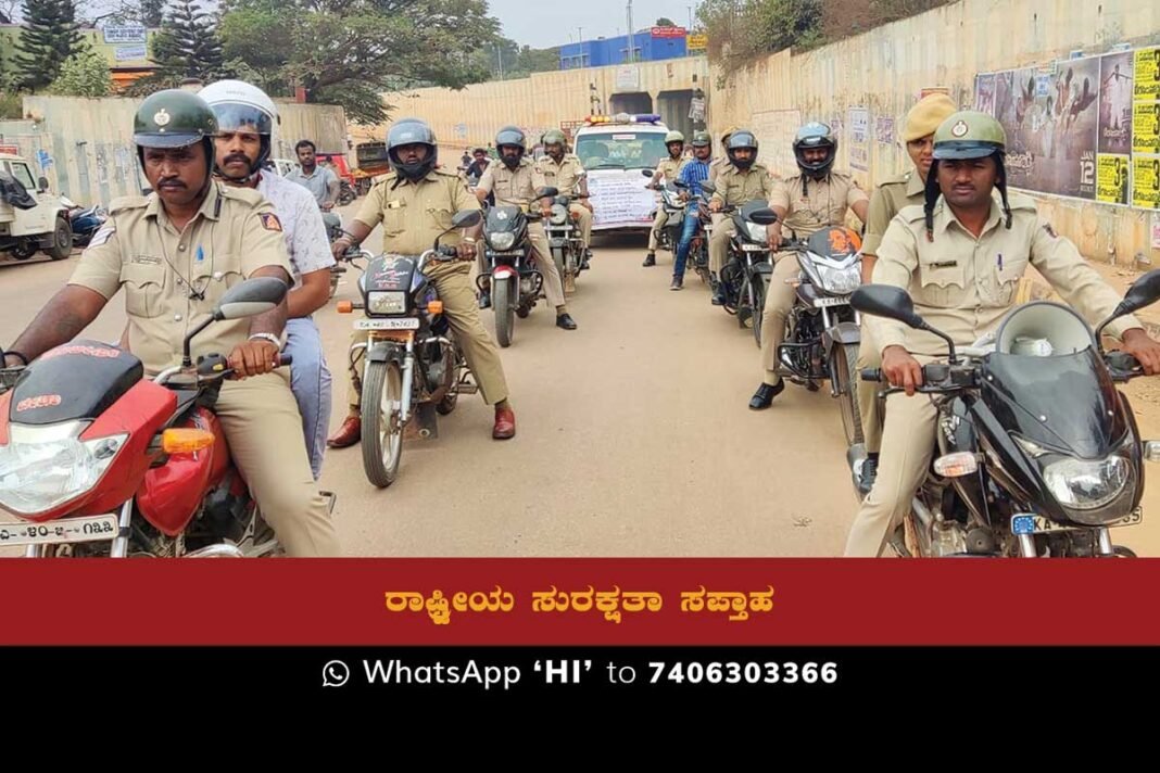 “ಸ್ಟೇರಿಂಗ್ ಒಂದು ಕೈಯಲ್ಲಿ. ಮೊಬೈಲ್ ಒಂದು ಕಿವಿಯಲ್ಲಿ ಅಪಘಾತ ತಂದಿತು ಕ್ಷಣದಲ್ಲಿ”, “ಅವಸರವೇ ಅಪಘಾತಕ್ಕೆ ಕಾರಣ”, “ಕುಡಿದು ವಾಹನ ಚಾಲನೆ ಮಾಡಬೇಡಿ”, “ವಾಹನ ಚಾಲನೆ ಮಾಡುವಾಗ ಕಡ್ಡಾಯವಾಗಿ ಹೆಲೈಟ್ ಮತ್ತು ಸೀಟ್‌ಬೆಲ್ಟ್ ದರಿಸಿ”, “ರಸ್ತೆ ದಾಟುವಾಗ ಅಕ್ಕ-ಪಕ್ಕ ನೋಡಿ ಚಲಿಸಿ”, “ರಸ್ತೆಯಲ್ಲಿ ಚೆಲ್ಲಾಟ ಸಾವಿನೊಡನೆ ಸೆಣಸಾಟ”, “ರಸ್ತೆಯಲ್ಲಿ ಎಡ ಬದಿಯಲ್ಲೆ ಚಲಿಸಿ”, “ರಸ್ತೆ ಸೂಚನಾ ಫಲಕಗಳನ್ನು ಕಡ್ಡಾಯವಾಗಿ ಪಾಲಿಸಿ” – ಮುಂತಾದ ವಿಚಾರಗಳನ್ನು ಮೈಕ್ ಮೂಲಕ ಪ್ರಚುರಪಡಿಸುತ್ತಾ ನಗರದಲ್ಲಿ ಪೊಲೀಸರು ಜಾಗೃತಿ ರ್ಯಾಲಿ ನಡೆಸಿದರು.