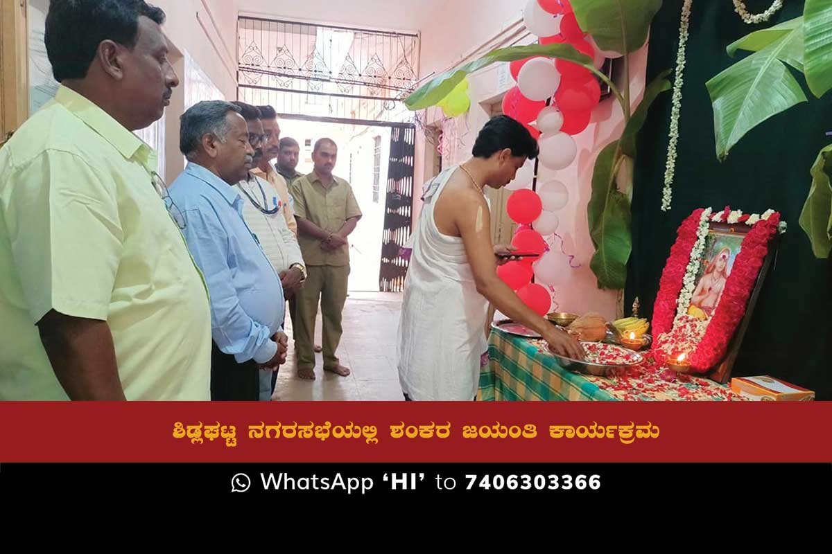 Sidlaghatta : Renowned philosopher Shankaracharya, known for his work in promoting intellectual and spiritual unity, was celebrated at the Shankaracharya Jayantyutsava event held on Tuesday at the City Council office.