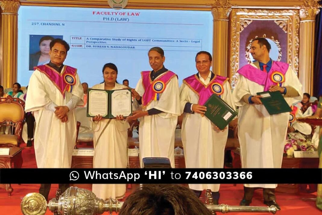 Sidlaghatta : LGBT ಸಮುದಾಯಗಳ ಹಕ್ಕುಗಳ ತುಲನಾತ್ಮಕ ಅಧ್ಯಯನ ಸಾಮಾಜಿಕ ಕಾನೂನು ದೃಷ್ಟಿಕೋನ ಕುರಿತು ಮಂಡಿಸಿದ ಪ್ರಬಂಧಕ್ಕೆ ಶಿಡ್ಲಘಟ್ಟದ ನಿವಾಸಿ ನ್ಯಾಯಾಧೀಶೆ ಎನ್.ಚಾಂದಿನಿ ಅವರಿಗೆ PhD ಪದವಿ ಲಭಿಸಿದೆ.