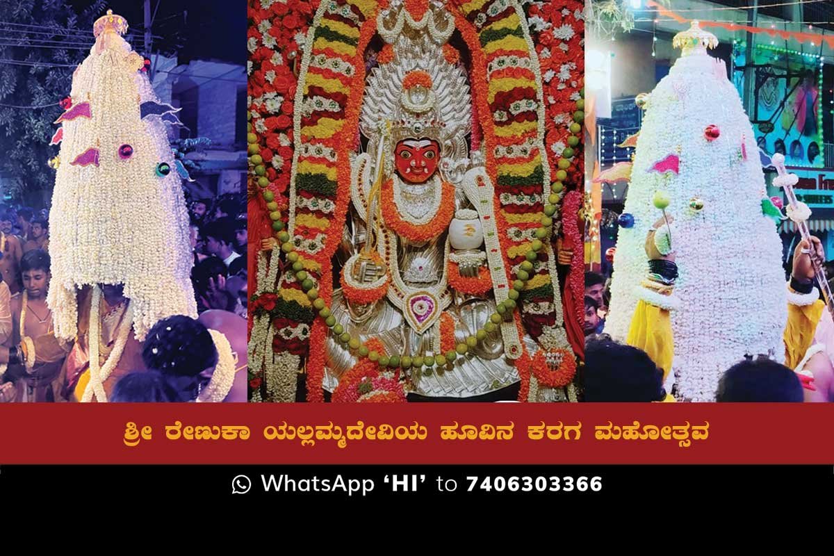 Sidlaghatta : The Town celebrated the karaga of Sri Renuka Yallamma Devi on Friday night. The worship of Goddess Yellamma was also conducted, Veerakumaras with swords followed Karaga throughout the night on the streets of the town, while residents decorated their homes with rangolis and offered jasmine flowers.