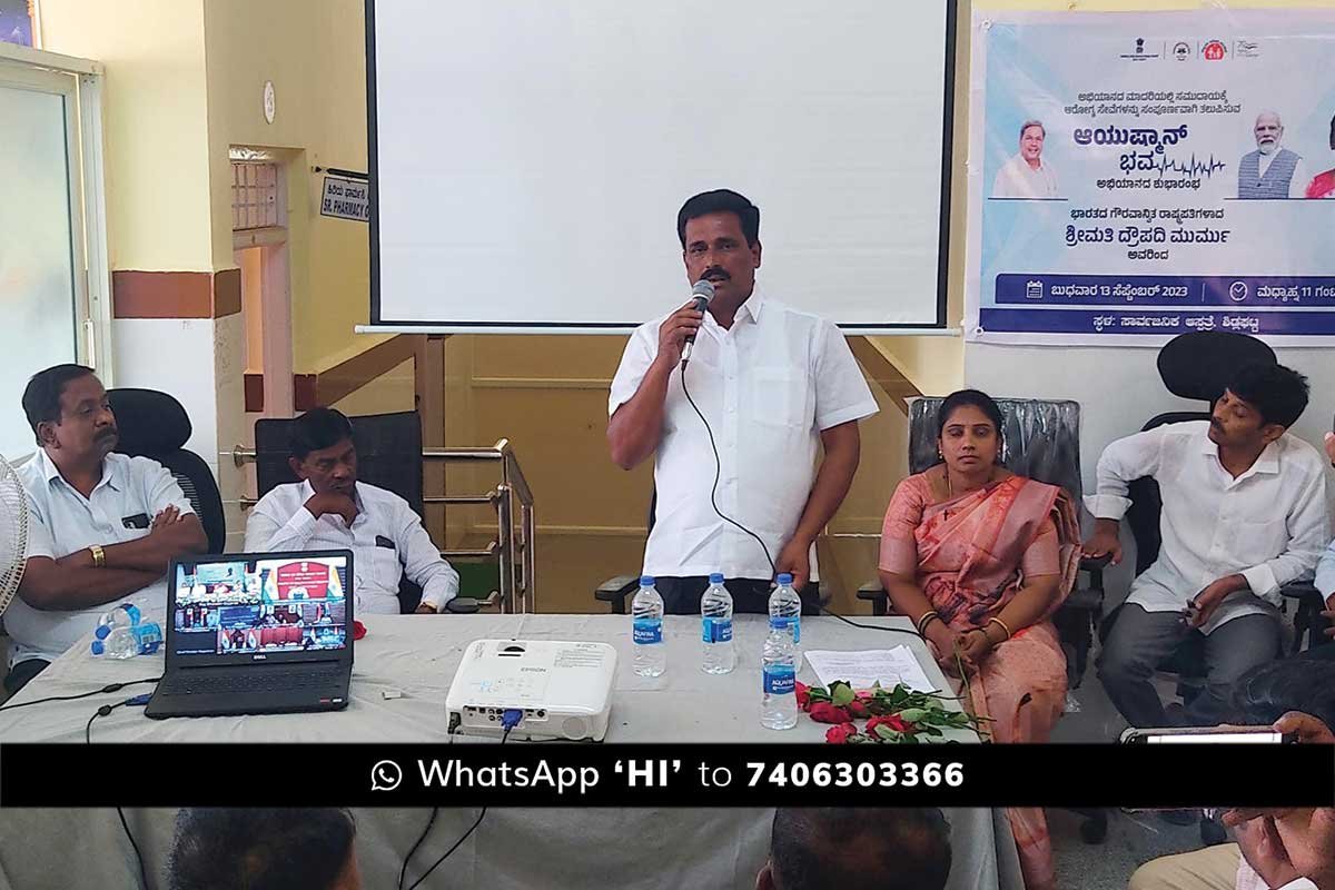 ತಾಲ್ಲೂಕು ಆರೋಗ್ಯಾಧಿಕಾರಿ ಡಾ.ವೆಂಕಟೇಶಮೂರ್ತಿ ಮಾತನಾಡಿ, “ಈ ಅಭಿಯಾನದಡಿ ಫಲಾನುಭವಿಗಳ ಪ್ರತಿ ಮನೆಗೂ ಆಯುಷ್ಮಾನ್ ಕಾರ್ಡ್ಗಳನ್ನು ವಿತರಣೆ ಮಾಡಲಾಗುತ್ತದೆ. ಜೊತೆಯಲ್ಲೇ ಆಯುಷ್ಮಾನ್ ಮೇಳ ಕೂಡಾ ಆಯೋಜನೆಯಾಗಿದೆ. ಒಂದು ವಾರದ ಮಟ್ಟಿಗೆ ನಡೆಯಲಿರುವ ಈ ಮೇಳವನ್ನು ದೇಶದ ಎಲ್ಲ ಸಮುದಾಯ ಆರೋಗ್ಯ ಕೇಂದ್ರಗಳ ಮಟ್ಟದಲ್ಲೂ ಆಯೋಜನೆ ಮಾಡಲು ತೀರ್ಮಾನಿಸಲಾಗಿದೆ. ಇದಲ್ಲದೆ ಆಯುಷ್ಮಾನ್ ಸಭಾ ಎಂಬ ಕಾರ್ಯಕ್ರಮವನ್ನು ಗ್ರಾಮ ಮಟ್ಟದಲ್ಲಿ ಹಾಗೂ ನಗರ ಪ್ರದೇಶಗಳ ವಾರ್ಡ್ಗಳ ಮಟ್ಟದಲ್ಲಿ ಆಯೋಜನೆ ಮಾಡಲು ತೀರ್ಮಾನಿಸಲಾಗಿದೆ. ಈ ಕಾರ್ಯಕ್ರಮದಲ್ಲಿ ವಿವಿಧ ಆರೋಗ್ಯ ಯೋಜನೆಗಳು ಹಾಗೂ ಸೇವೆಗಳ ಕುರಿತಾಗಿ ಜನರಿಗೆ ಜಾಗೃತಿ ಮೂಡಿಸಲಾಗುವುದು” ಎಂದು ವಿವರಿಸಿದರು.