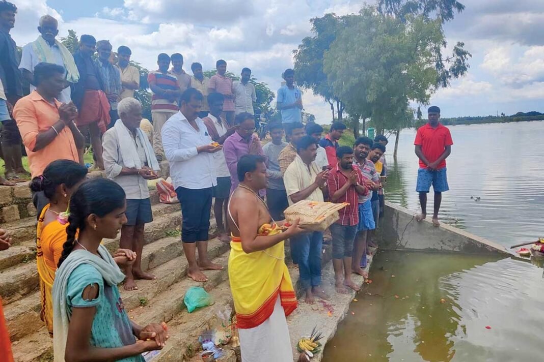 Belluti, Sidlaghatta : ಶಿಡ್ಲಘಟ್ಟ ತಾಲ್ಲೂಕಿನ ಬೆಳ್ಳೂಟಿ ಕೆರೆಯು (Belluti Lake) ಮಂಗಳವಾರ ಕೋಡಿ ಹರಿಯಿತು. KOCHIMUL ನಿರ್ದೇಶಕ ಆರ್.ಶ್ರೀನಿವಾಸ್, ಗ್ರಾಮ ಪಂಚಾಯಿತಿ ಸದಸ್ಯರಾದ ಬೆಳ್ಳೂಟಿ ಸಂತೋಷ್, ಪ್ರೇಮಾ ಆನಂದ್, ಗ್ರಾಮದ ಬೆಳ್ಳೂಟಿ ವೆಂಕಟೇಶ್, ಚಂದ್ರಪ್ಪ, ನಿರಂಜನ್ ರೈತರೊಂದಿಗೆ ಕೆರೆಗೆ ತೆರಳಿ ತುಂಬಿದ ಕೆರೆಗೆ ವಿಶೇಷ ಪೂಜೆ ಸಲ್ಲಿಸಿ ಬಾಗಿನ ಅರ್ಪಿಸಿದರು.