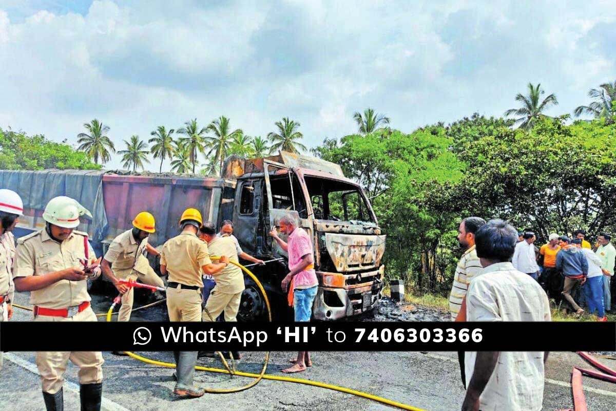 ಅಪಘಾತವಾದಾಗ ಒಂದು ಬೈಕ್ ಮತ್ತು ಸವಾರ ರಸ್ತೆಯ ಒಂದು ಬದಿಗೆ ಬಿದ್ದರೆ ಮತ್ತೊಂದು ಬೈಕ್ ಉಜ್ಜಿಕೊಂಡು ಹೋಗಿ ನೇರವಾಗಿ ಹೆದ್ದಾರಿಯಲ್ಲಿ ಚಲಿಸುತ್ತಿದ್ದ ಸಿಮೆಂಟ್ ಲಾರಿಗೆ ಡಿಕ್ಕಿಯಾಗಿ ಬೆಂಕಿ ಹೊತ್ತಿಕೊಂಡಿದ್ದು ಲಾರಿ ಪೂರ್ಣವಾಗಿ ಸುಟ್ಟು ಹೋಗಿದೆ. ಅಗ್ನಿಶಾಮಕ ಸಿಬ್ಬಂದಿ ಸ್ಥಳಕ್ಕೆ ಬಂದು ಬೆಂಕಿ ನಂದಿಸಲು ಮುಂದಾದರು. ಆದರೂ ಲಾರಿ ಪೂರ್ಣವಾಗಿ ಸುಟ್ಟಿತು.