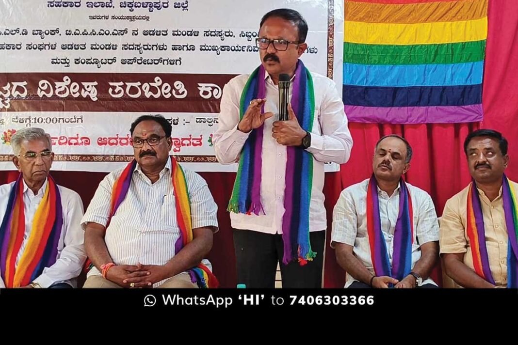 ನಗರದ ಡಾಲ್ಫಿನ್ ಶಾಲಾ ಸಭಾಂಗಣದಲ್ಲಿ ಗುರುವಾರ ಕರ್ನಾಟಕ ರಾಜ್ಯ ಸಹಕಾರ ಮಹಾ ಮಂಡಳ, ಚಿಕ್ಕಬಳ್ಳಾಪುರ ಜಿಲ್ಲಾ ಸಹಕಾರ ಒಕ್ಕೂಟ, ಕೋಲಾರ-ಚಿಕ್ಕಬಳ್ಳಾಪುರ ಜಿಲ್ಲಾ ಕೇಂದ್ರ ಸಹಕಾರ ಬ್ಯಾಂಕ್‌ನಿಂದ ಪಿ.ಎಲ್‌.ಡಿ ಬ್ಯಾಂಕ್, ಟಿ.ಎ.ಪಿ.ಸಿ.ಎಂ.ಎಸ್, ಪ್ರಾಥಮಿಕ ಕೃಷಿ ಪತ್ತಿನ ಸಹಕಾರ ಸಂಘಗಳ ಆಡಳಿತ ಮಂಡಳಿಯ ಸದಸ್ಯರು, ಮುಖ್ಯ ಕಾರ್ಯನಿರ್ವಾಹಕರು, ಕಂಪ್ಯೂಟರ್ ಆಪರೇಟರ್‌ಗಳಿಗೆ ಹಮ್ಮಿಕೊಂಡಿದ್ದ ಒಂದು ದಿನದ ತರಬೇತಿ ಕಾರ್ಯಾಗಾರವನ್ನು ಉದ್ಘಾಟಿಸಿ ಅವರು ಮಾತನಾಡಿದರು.
