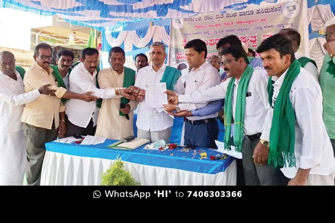 ಶಿಡ್ಲಘಟ್ಟ ತಾಲ್ಲೂಕಿನ ಜಂಗಮಕೋಟಿ ಕ್ರಾಸ್ ಬಳಿ ರಾಜ್ಯ ರೈತ ಸಂಘ ಹಾಗು ಹಸಿರುಸೇನೆ ವತಿಯಿಂದ ಹಮ್ಮಿಕೊಂಡಿದ್ದ ರೈತ ಸಂಘದ ಸದಸ್ಯತ್ವ ಹಾಗೂ ಹಸಿರು ಶಾಲು ಧೀಕ್ಷಾ ಅಭಿಯಾನ ಕಾರ್ಯಕ್ರಮದ ಉದ್ಘಾಟನೆ ನೆರವೇರಿಸಿ ಅವರು ಮಾತನಾಡಿದರು.