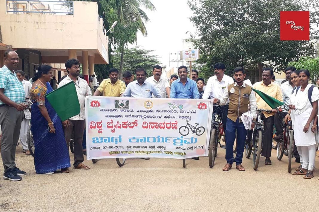 Sidlaghatta : ಶಿಡ್ಲಘಟ್ಟ ನಗರದ ಸರ್ಕಾರಿ ಸಾರ್ವಜನಿಕ ಆಸ್ಪತ್ರೆಯ (Government Hospital) ಆವರಣದಲ್ಲಿ ಮಂಗಳವಾರ ವಿಶ್ವ ಬೈಸಿಕಲ್ ದಿನಾಚರಣೆಯ (World Bicycle Day) ಕಾರ್ಯಕ್ರಮದಲ್ಲಿ ಜಾಥಾಗೆ ಚಾಲನೆ ನೀಡಿ ತಾಲ್ಲೂಕು ಆರೋಗ್ಯಾಧಿಕಾರಿ ಡಾ.ವೆಂಕಟೇಶಮೂರ್ತಿ (Dr. Venkateshmurthy) ಅವರು ಮಾತನಾಡಿದರು.