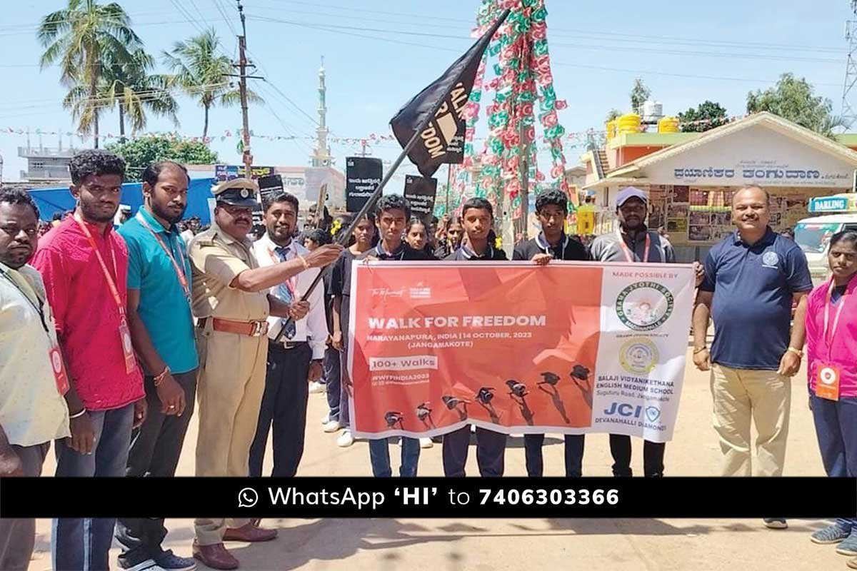ತಾಲ್ಲೂಕಿನ ಜಂಗಮಕೋಟೆ ವೃತ್ತದಲ್ಲಿ ಶನಿವಾರ ಜೇಸಿಐ ದೇವನಹಳ್ಳಿ ಡೈಮಂಡ್ಸ್, ಮೂಮೆಂಟ್ ಇಂಡಿಯಾ ಹಾಗೂ ಆಂಧ್ರ ಪ್ರದೇಶದ ಮದನಪಲ್ಲಿಯ ಗ್ರಾಮ ಜ್ಯೋತಿ ಸೊಸೈಟಿ ಇವರುಗಳ ಸಂಯುಕ್ತ ಆಶ್ರಯದಲ್ಲಿ ಆಯೋಜಿಸಲಾದ ವಾಕ್ ಫಾರ್ ಫ್ರೀಡಂ- ಮಕ್ಕಳ ಕಳ್ಳ ಸಾಗಾಣಿಕೆ ತಡೆಗಟ್ಟಲು ಜನಜಾಗೃತಿ ಮೂಡಿಸುವ ಸ್ವಾತಂತ್ರ್ಯ ನಡಿಗೆ ಜಾಥಾ ಕಾರ್ಯಕ್ರಮವನ್ನು ಉದ್ಘಾಟಿಸಿ ಅವರು ಮಾತನಾಡಿದರು.