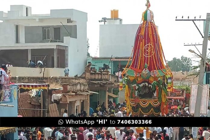 Jangamakote, Sidlaghatta : ಶಿಡ್ಲಘಟ್ಟ ತಾಲ್ಲೂಕಿನ ಜಂಗಮಕೋಟೆಯಲ್ಲಿ ಶನಿವಾರ ಶ್ರೀ ಪ್ರಸನ್ನ ಗಂಗಾಧರೇಶ್ವರ ಸ್ವಾಮಿಯ ರಥೋತ್ಸವವನ್ನು ಭಕ್ತಿ, ಭರವಸೆ ಮತ್ತು ವಿಜೃಂಭಣೆಯಿಂದ ಆಚರಿಸಲಾಯಿತು.