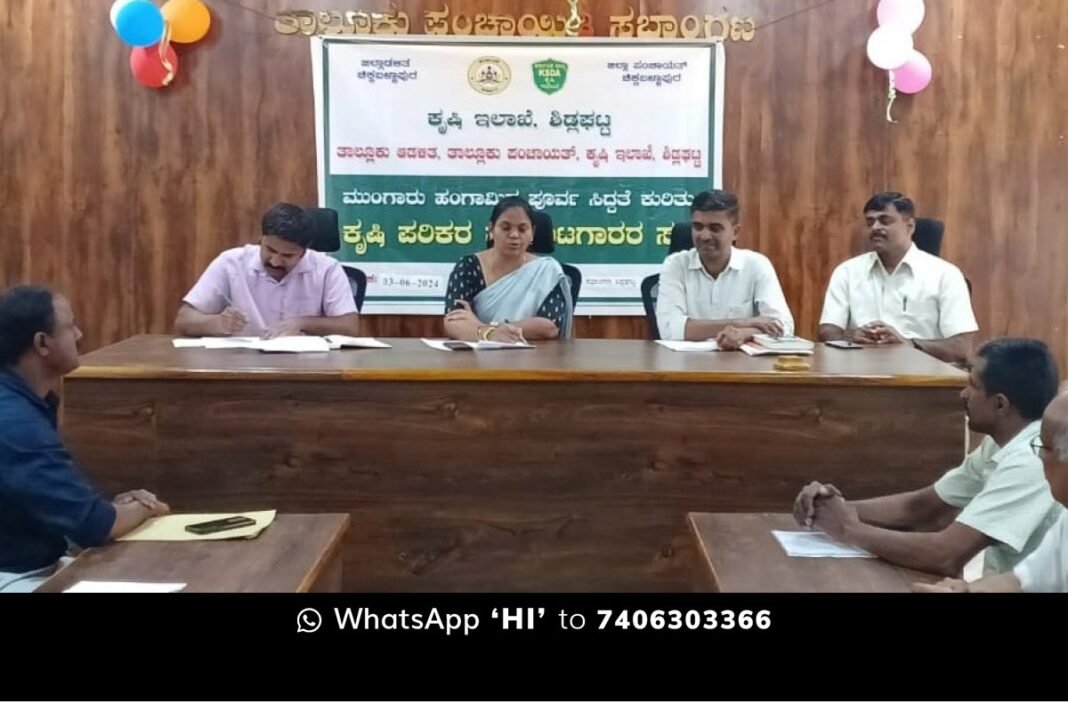 ನಗರದ ತಾ.ಪಂ ಸಭಾಂಗಣದಲ್ಲಿ ಸೋಮವಾರ ಕೃಷಿ ಇಲಾಖೆಯಿಂದ ಹಮ್ಮಿಕೊಂಡಿದ್ದ ಮುಂಗಾರು ಹಂಗಾಮಿನ ಪೂರ್ವ ಸಿದ್ದತೆ ಕುರಿತು ಕೃಷಿ ಪರಿಕರ ಮಾರಾಟಗಾರರ ಸಭೆಯಲ್ಲಿ ಭಾಗವಹಿಸಿ ಮಾತನಾಡಿದರು.