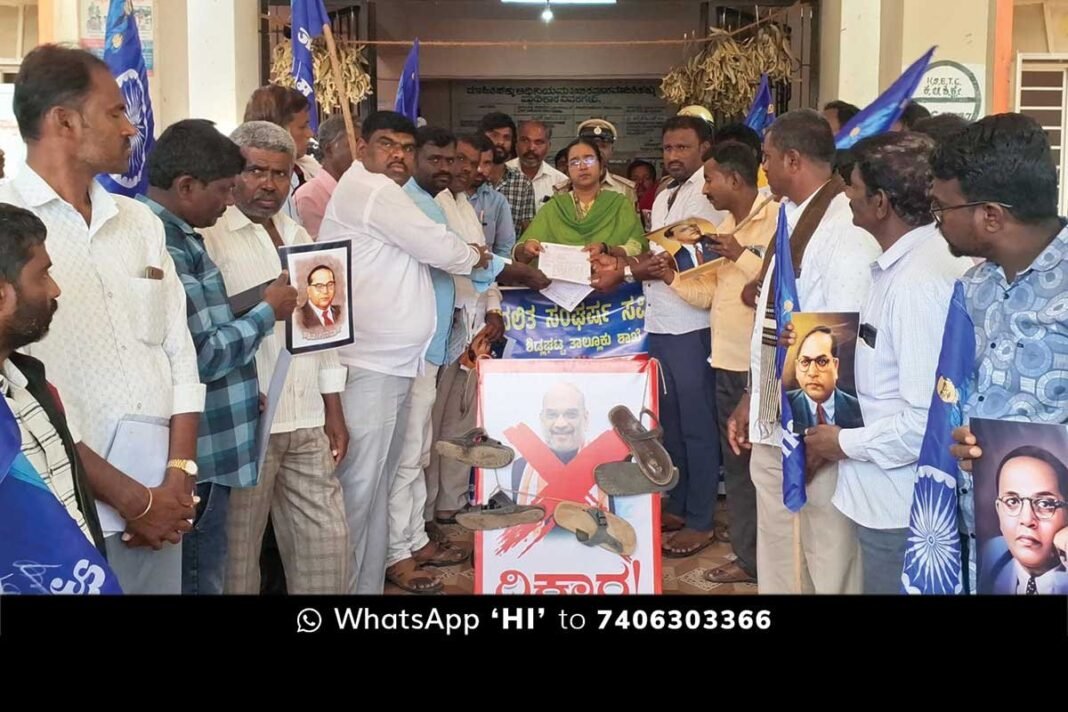 Sidlaghatta : ಅಮಿತ್ ಶಾ ಅವರ ಭಾವಚಿತ್ರಕ್ಕೆ ಚಪ್ಪಲಿ ಹಾರ ಹಾಕಿ, ಘೋಷಣೆಗಳನ್ನು ಕೂಗಿದ ದಸಂಸ ಕಾರ್ಯಕರ್ತರು ತಮ್ಮ ಆಕ್ರೋಶವನ್ನು ತೀವ್ರಗೊಳಿಸಿದರು. ಈ ಸಂದರ್ಭದಲ್ಲಿ ದಸಂಸ ತಾಲ್ಲೂಕು ಸಂಚಾಲಕ ತಾತಹಳ್ಳಿ ಚಲಪತಿ ಮಾತನಾಡಿ, ಸಂಸತ್ತಿನಲ್ಲಿ ಅಂಬೇಡ್ಕರ್ ಕುರಿತು ಅಮಿತ್ ಶಾ ನೀಡಿದ ಹೇಳಿಕೆ ಅವರ ಅಸಹನೆಯನ್ನು ತೋರುತ್ತದೆ ಎಂದು ಆರೋಪಿಸಿದರು.