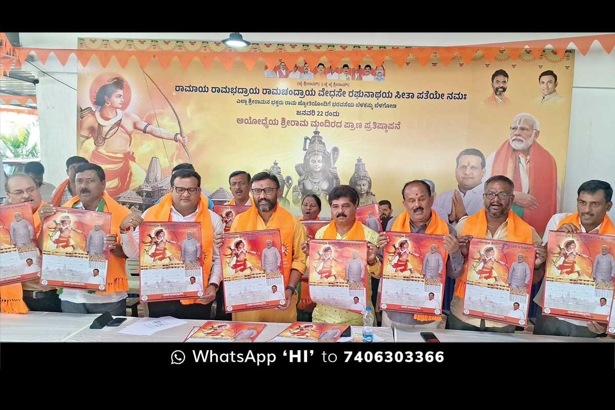 ನಗರದಲ್ಲಿನ ಬಿಜೆಪಿಯ ಸೇವಾ ಸೌಧ ಕಚೇರಿಯಲ್ಲಿ ಗುರುವಾರ ನಡೆದ ಶ್ರೀರಾಮ ಕ್ಯಾಲೆಂಡರ್ ಬಿಡುಗಡೆ, ಜ.22 ರಂದು ನಡೆಯುವ ಅಯೋಧ್ಯೆಯ ಶ್ರೀರಾಮ ಮಂದಿರದ ಪ್ರಾಣ ಪ್ರತಿಷ್ಠಾಪನೆಯ ಹಿನ್ನಲೆಯಲ್ಲಿ ಪ್ರತಿ ಗ್ರಾಮದಲ್ಲೂ ಪೂಜೆ ನಡೆಸಲು ಅಗತ್ಯ ಪೂಜಾ ಸಾಮಗ್ರಿಗಳ ವಿತರಣೆ ಕಾರ್ಯಕ್ರಮದಲ್ಲಿ ಅವರು ಮಾತನಾಡಿದರು.