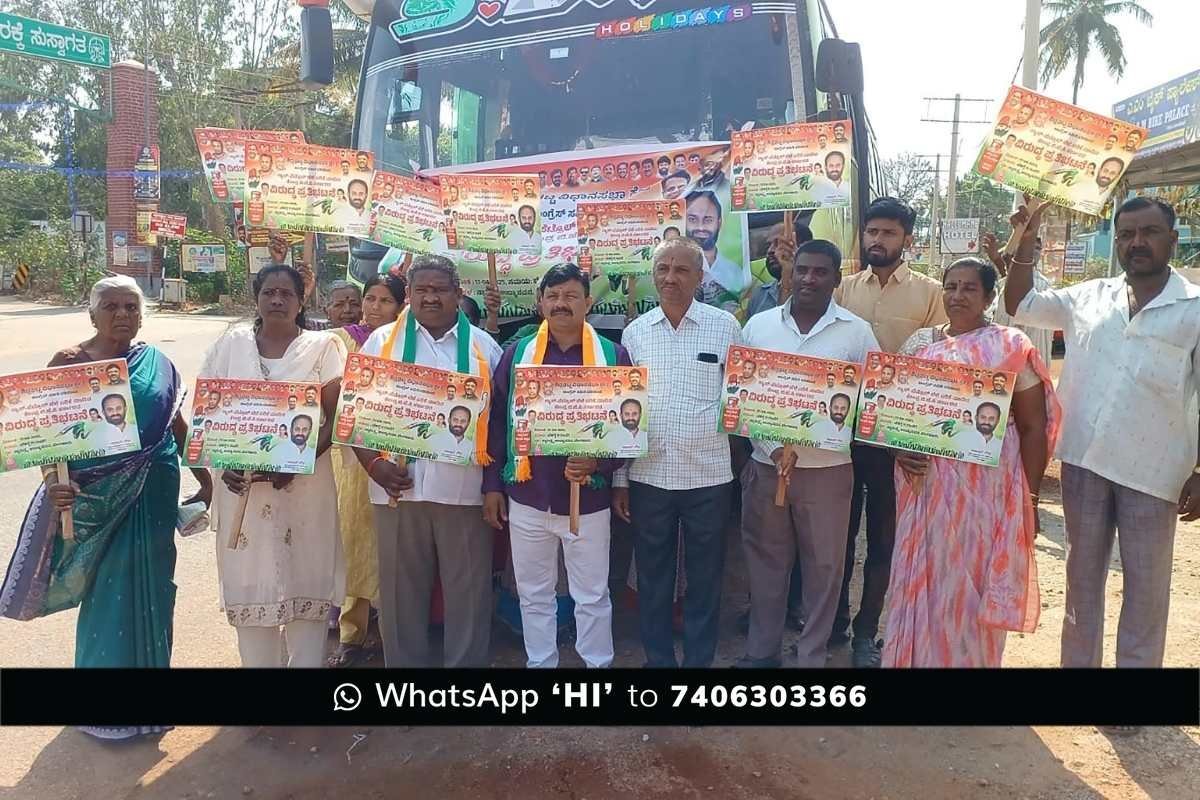 ಬೆಂಗಳೂರಿನ ಫ್ರೀಡಂ ಪಾರ್ಕ್ನಲ್ಲಿ ಕಾಂಗ್ರೆಸ್ ಪಕ್ಷದಿಂದ ಆಯೋಜಿಸಲಾದ ಪ್ರತಿಭಟನೆಯಲ್ಲಿ ಭಾಗವಹಿಸಲು ಕಾಂಗ್ರೆಸ್ ನಾಯಕ ರಾಜೀವ್ ಗೌಡ ನೇತೃತ್ವದಲ್ಲಿ 25 ಕ್ಕೂ ಹೆಚ್ಚು ಬಸ್ಗಳಲ್ಲಿ ಕಾಂಗ್ರೆಸ್ ಕಾರ್ಯಕರ್ತರು ತೆರಳಿದರು. ಅವರನ್ನು ಉದ್ದೇಶಿಸಿ ಮುನೀಂದ್ರ ಮಾತನಾಡಿದರು.