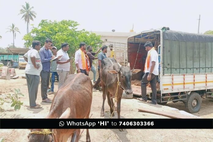 ಸಾದಲಿ ಹೋಬಳಿಯ ಸೊಣಗಾನಹಳ್ಳಿ ಬಳಿ ವಾಹನ ತಡೆದ ಭಜರಂಗದಳದ ಕಾರ್ಯಕರ್ತರು ಹಾಗೂ ಗ್ರಾಮಸ್ಥರು, ಗೋವುಗಳ ಸುರಕ್ಷತೆಗಾಗಿ ಕ್ರಮ ಕೈಗೊಂಡರು.