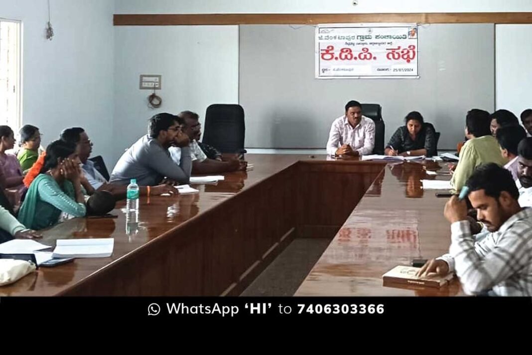 J Venkatapura, Sidlaghatta : ಶಿಡ್ಲಘಟ್ಟ ತಾಲ್ಲೂಕಿನ ಜೆ.ವೆಂಕಟಾಪುರ ಗ್ರಾಮಪಂಚಾಯಿತಿ ಸಭಾಂಗಣದಲ್ಲಿ ಗ್ರಾಮಪಂಚಾಯಿತಿ ಅಧ್ಯಕ್ಷ ನಾಗೇಶ್ ಅವರ ಅಧ್ಯಕ್ಷತೆಯಲ್ಲಿ ಕೆಡಿಪಿ ಸಭೆ ನಡೆಯಿತು.