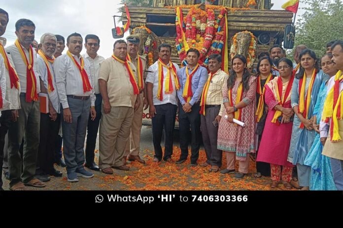 Sidlaghatta : ಶಿಡ್ಲಘಟ್ಟ ತಾಲ್ಲೂಕಿನ ಗಡಿ ಎಲ್.ಮುತ್ತುಕದಹಳ್ಳಿ ಗೇಟ್ ಬಳಿ ಸೋಮವಾರ ಕನ್ನಡ ಜ್ಯೋತಿ ರಥವನ್ನು ಶಾಸಕ ಬಿ.ಎನ್.ರವಿಕುಮಾರ್, ತಹಶೀಲ್ದಾರ್ ಬಿ.ಎನ್.ಸ್ವಾಮಿ ಮತ್ತು ತಾಲ್ಲೂಕು ಆಡಳಿತ ವತಿಯಿಂದ ರಥಕ್ಕೆ ಮಾಲಾರ್ಪಣೆ ಮಾಡಿ, ಪುಷ್ಪ ವೃಷ್ಟಿಯೊಂದಿಗೆ ಅದ್ದೂರಿಯಾಗಿ ಸ್ವಾಗತಿಸಲಾಯಿತು.