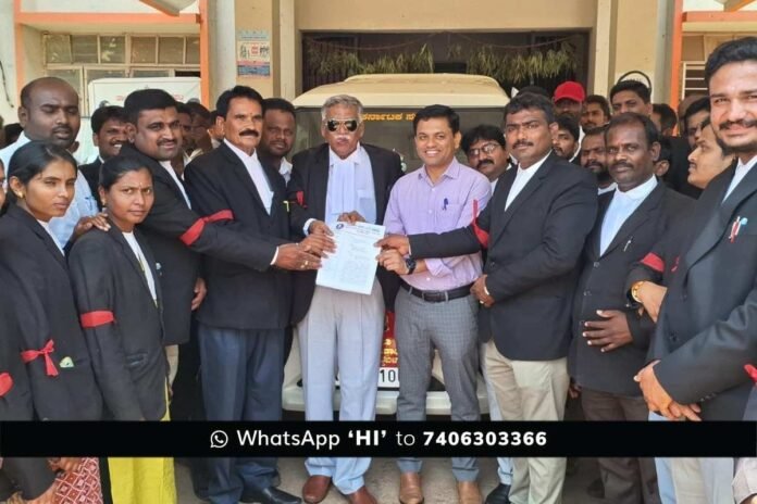 Sidlaghatta : ಹಿರಿಯ ವಕೀಲ ಹಾಗೂ ರಾಜ್ಯ ವಕೀಲರ ಪರಿಷತ್ತಿನ ಸದಸ್ಯ ಸದಾಶಿವರೆಡ್ಡಿ ಅವರ ಮೇಲೆ ನಡೆದ ಭೀಕರ ಹಲ್ಲೆಯನ್ನು ಖಂಡಿಸಿ, ಜೆಎಂಎಫ್ಸಿ ನ್ಯಾಯಾಲಯ ಆವರಣದಲ್ಲಿ ಶಿಡ್ಲಘಟ್ಟದ ವಕೀಲರು ಸೋಮವಾರ ಕೆಂಪು ಪಟ್ಟಿಗಳನ್ನು ಧರಿಸಿ ಮೌನ ಪ್ರತಿಭಟನೆ ನಡೆಸಿದರು.