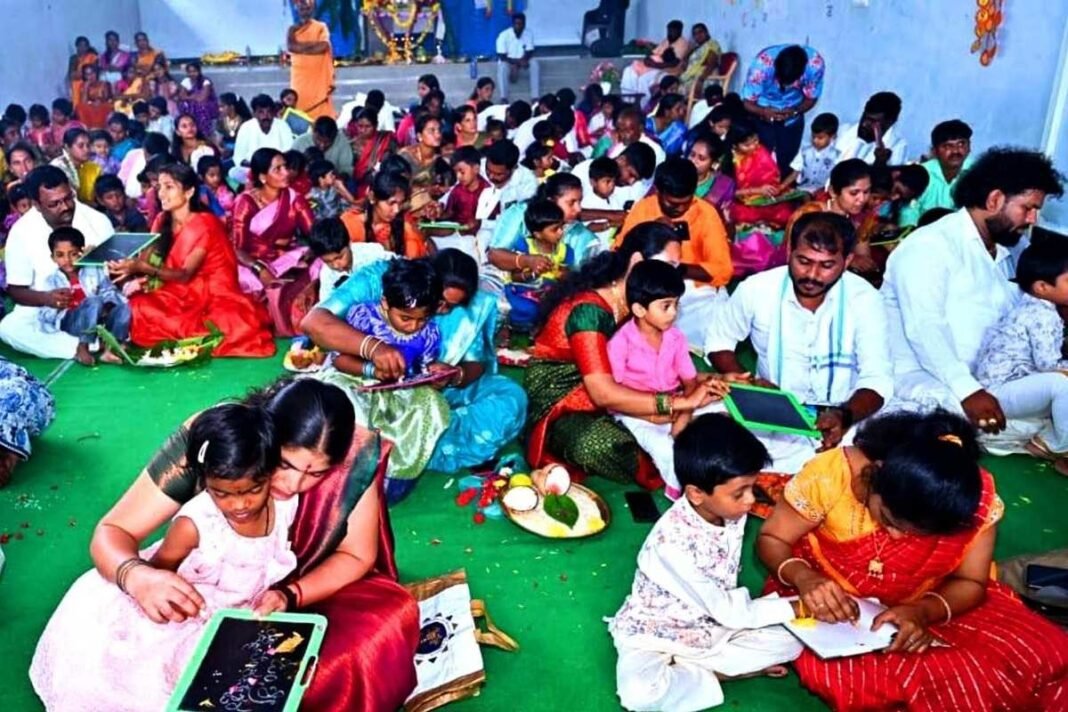 ಕಾರ್ಯಕ್ರಮದಲ್ಲಿ ಹಿಂದೂ-ಮುಸ್ಲಿಮರು ಎನ್ನುವ ಬೇಧಭಾವವಿಲ್ಲದೆ, ತಮ್ಮ ಮಕ್ಕಳಿಗೆ ಅಕ್ಷರಾಭ್ಯಾಸ ಮಾಡಿಸಿದರು.