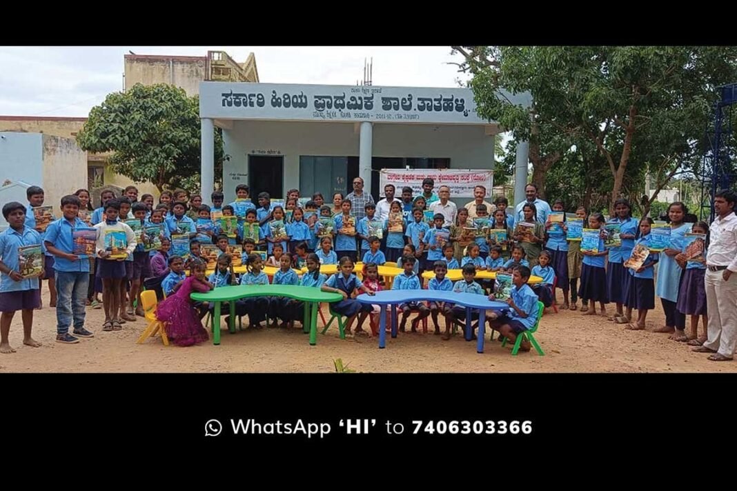 Tatahalli, Sidlaghatta : ಶಿಡ್ಲಘಟ್ಟ ತಾಲ್ಲೂಕಿನ ತಾತಹಳ್ಳಿ ಸರ್ಕಾರಿ ಹಿರಿಯ ಪ್ರಾಥಮಿಕ ಶಾಲೆಗೆ ಗುರುವಾರ ಶ್ರೀ ವಾಗ್ದೇವಿ ಶೈಕ್ಷಣಿಕ ಮತ್ತು ಗ್ರಾಮಾಭಿವೃದ್ಧಿ ಟ್ರಸ್ಟಿನ ವತಿಯಿಂದ 1 ರಿಂದ 3 ನೇ ತರಗತಿ ನಲಿಕಲಿ ಮಕ್ಕಳಿಗೆ ಪೀಠೋಪಕರಣಗಳನ್ನು ಕೊಡುಗೆಯಾಗಿ ನೀಡಲಾಯಿತು.
