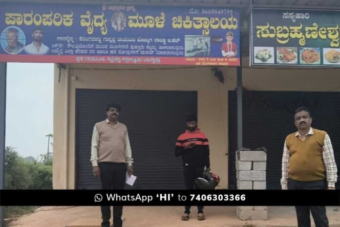 ಅಧಿಕಾರಿಗಳು ಸ್ಥಳಕ್ಕೆ ಭೇಟಿ ನೀಡಿ, ಅಗತ್ಯ ಪರವಾನಗಿ ಇಲ್ಲದೆ ನಿರ್ವಹಿಸುತ್ತಿದ್ದ ಈ ಚಿಕಿತ್ಸಾಲಯವನ್ನು ತಕ್ಷಣವೇ ತಡೆಯಲು ಸೂಚಿಸಿ, ಬೀಗ ಜಡಿದರು. ಕಾರ್ಯಾಚರಣೆಯಲ್ಲಿ ತಾಲೂಕು ಆರೋಗ್ಯ ನಿರೀಕ್ಷಣಾಧಿಕಾರಿ ದೇವರಾಜ್ ಸಹ ಭಾಗವಹಿಸಿದ್ದರು.