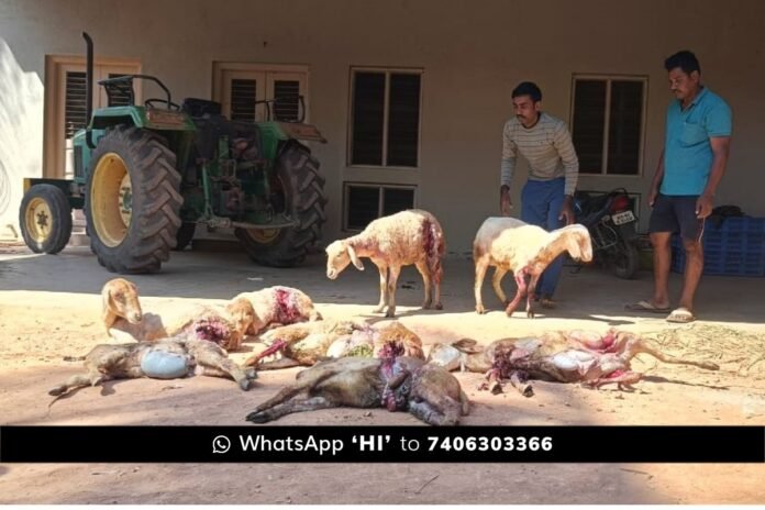 Chowdasandra, Sidlaghatta : ಶಿಡ್ಲಘಟ್ಟ ತಾಲ್ಲೂಕಿನ ಚೌಡಸಂದ್ರದಲ್ಲಿ ರೈತ ರಾಮಾಂಜಿನಪ್ಪ ಅವರ ಕುರಿ ದೊಡ್ಡಿ ಮೇಲೆ ಮಂಗಳವಾರ ಬೆಳಗಿನ ಜಾವದಲ್ಲಿ ಪ್ರಾಣಿಯೊಂದರಿಂದ ಧಾಳಿಗೀಡಾಗಿ 4 ಕುರಿಗಳು ಸ್ಥಳದಲ್ಲೇ ಸತ್ತು, 5 ಕುರಿಗಳು ತೀವ್ರವಾಗಿ ಗಾಯಗೊಂಡಿವೆ.