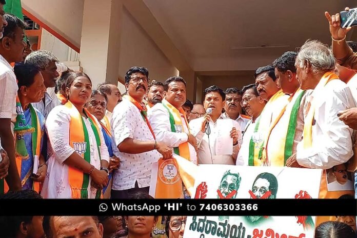 ನಗರದಲ್ಲಿ ಸೋಮವಾರ ಬಿಜೆಪಿ ಪಕ್ಷದ ವತಿಯಿಂದ ತಾಲ್ಲೂಕಿನ ಬೆಳ್ಳೂಟಿ ಗೇಟ್ ಬಳಿ ಇರುವ ಶ್ರೀ ಗುಟ್ಟಾಂಜನೇಯಸ್ವಾಮಿ ದೇವಾಲಯದ ಜಾಗದ ಪಹಣಿಯಲ್ಲಿ ಖಬರಸ್ಥಾನ ವಕ್ಫ್ ಸ್ವತ್ತು ಎಂದು ದಾಖಲಾಗಿರುವುದನ್ನು ವಿರೋಧಿಸಿ ಸಾರಿಗೆ ಬಸ್ ನಿಲ್ದಾಣದಿಂದ ತಾಲ್ಲೂಕು ಕಚೇರಿ ತನಕ ಹಮ್ಮಿಕೊಂಡಿದ್ದ ಬೃಹತ್ ಪ್ರತಿಭಟನೆಯ ನೇತೃತ್ವ ವಹಿಸಿ ಅವರು ಮಾತನಾಡಿದರು.